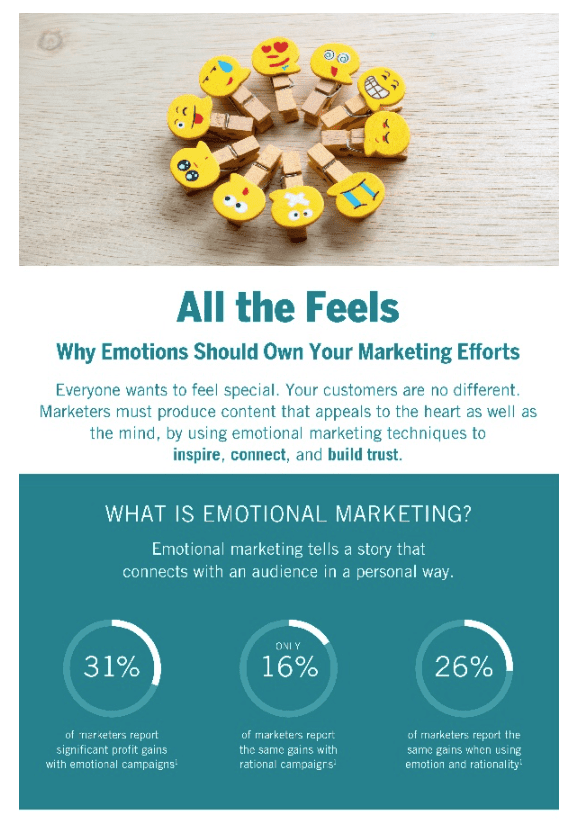 Emotional marketing is a tactic that’s utilized by marketers to address their feelings, values and pain points so brands can make connections with their prospects and form brand loyalty. Brands are struggling to do this despite the massive amount of data they’ve acquired, their utilization of influencer marketing and ongoing personalization tactics. The fact of the matter is, only 15% of customers say that brands do a good job of emotionally bonding with them beyond a functional relationship. That’s not great news for brands that are trying to connect and become more transparent.