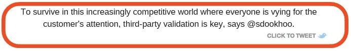 Customers are consistently more wary of brands overall. In fact, 42 percent of Americans find brands and companies less truthful today than 20 years ago, according to a survey by McCann’s Truth Central unit. To survive in this increasingly competitive world where everyone is vying for the customer’s attention, third-party validation is key.